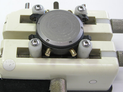 防水ですから裏蓋はスクリューバック。しかも固く締めつけてあります。