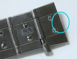 バックルは普通の三つ折れ無垢バックルで正常です。