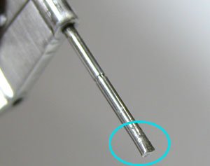 よって元のピンで固定するしかありません。この部分をまた渾身の力で叩いて楕円形に潰します。それを強引に打ち込んで完成ですか。ただし!!