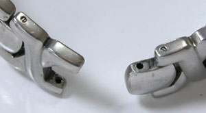 ベルト固定ピンの挿入もご依頼ですが、実はそう簡単ではありません。