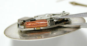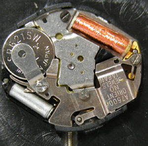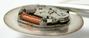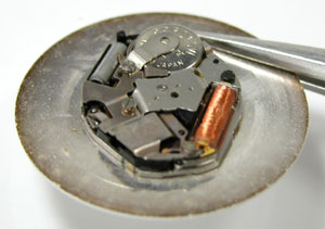 もうひとつ違った腕時計で実験です。文字盤&ムーブを取り出して。