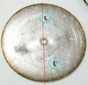 これを、文字盤 の上下を逆さまにして入れると当然、中心がずれますから