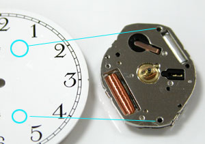 文字盤の足を付けてから、その位置に合わせてムーブメントに穴を空ける事はありません。