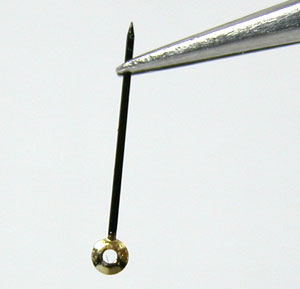 文字盤の作業が終わっても、この細い針を元に戻すのは至難の業です。