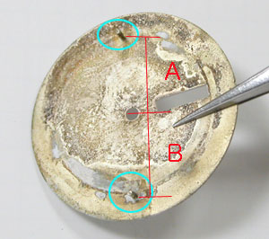 ついでに上記、写真ですが、文字盤の足は中心線上にあります。