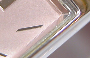 写真・右が、ガラスを外した状態の接着面ですが微かに黄色くなっている事が分かります。