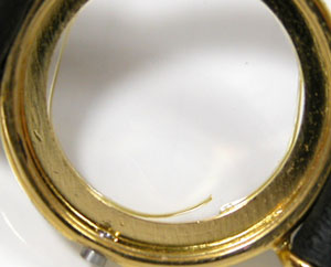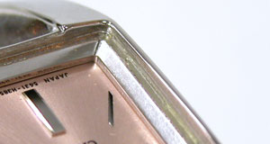 その前の症状は写真の様にガラスとケースの隙間が「黄色く」なってきます。