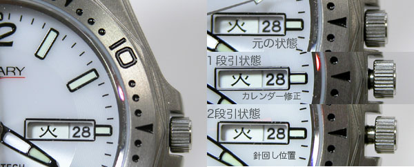 クォーツ腕時計のカレンダーの操作は竜頭で行おります。