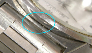 こうやって拡大するとベゼルとガラスの隙間が汚れおります。