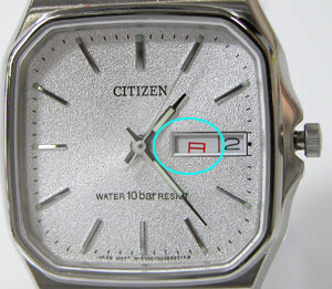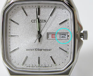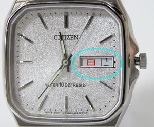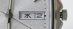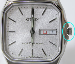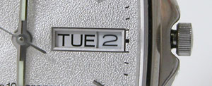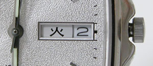 竜頭をゆっくり右に回すと曜日が「月→TUE」に変わりました。