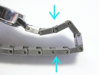 この腕時計、バンドが”カクン”と角度が付きやすい。