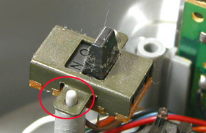 写真・右は上部の”鳴り止めスイッチ”ですが、これも基盤ごと指で引けば