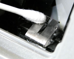 電池の端子がこうなります。綿棒などで拭いておきましょう。