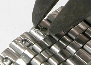 この弓環は、このようにセットして片方ずつ、バネ棒を押し込みます。