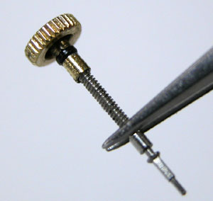 外れた竜頭があれば、これにねじ込んで取り付けるのみ。