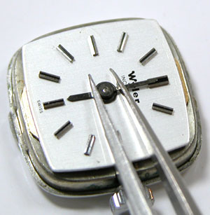 手巻き腕時計の針が外れたので修理のご依頼です。