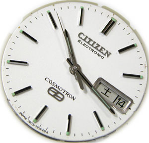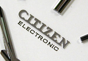 これは”シチズンの電子腕時計”ですが。ダイアルに”Electronic”の文字が見えます。