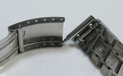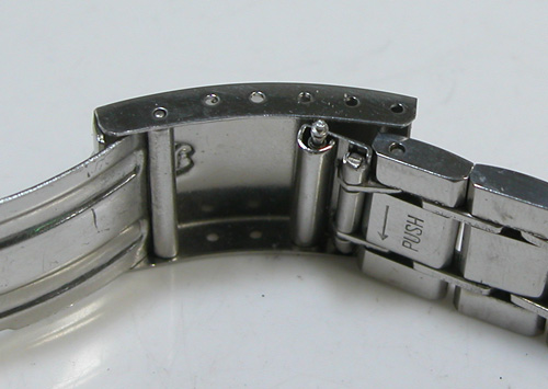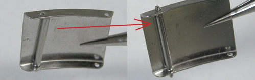 外れているバネ棒の先端を押し込みバックルに内側に入れます。