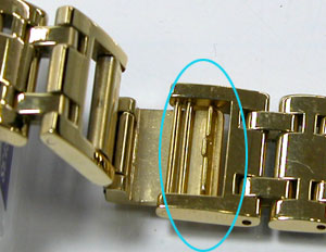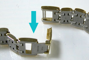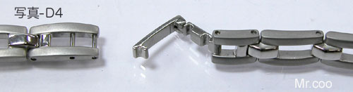 つまり金具を外すと三つ折式とは違い「時計が輪の状態にはならない。」