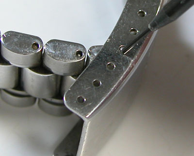 今回は写真の様に、バネ棒の先端を突いてバネ棒の頭が見えなくなりましたが。