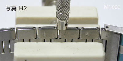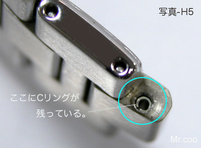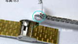 ベルト調整のひとつ「Cリング式」です。安い腕時計には採用されていない方式です。