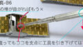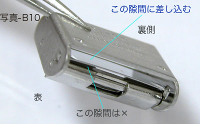 注意点は写真にも記載の、スライドする金具の「○印の凹」の部分と。