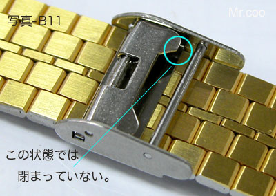 同じスライドバックルでも「セイコー独自」の物もあります。ここでちょっと「スライド」でも変わった物を紹介!「三つ折れスライドとは」これは特殊な「スライド」ですが、今はCITIZENだけの方式なので仮に「シチズン式」とでも言っておきましょう。次は