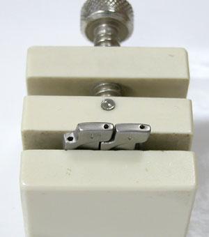 2005年9月に投稿がありまして、こちら「Cリング調整を画鋲でやってはいけない!」をどうぞ!こうなっては大変です。そんな大変な事はしたくない。専用工具で簡単に確実にやってみたい方は楽天などで バイスや金槌。「バンド用工具」で検索すれば多数出てきますから、 揃えておいてもいいかも知れませんね。 修理工具はこちら 2017.6.14修正 旧:waripin-colum.html