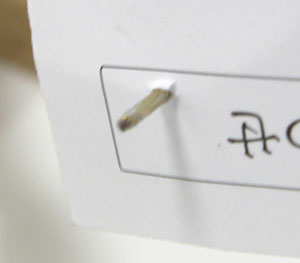 後は押しピンですが、厚紙(名刺など)に押しピンを刺して。 この様な状態にしてから。