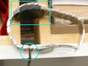 この○位置が、ピンの抜ける隙間で。□位置が腕時計本体を安定させるのに、