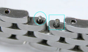 途中のコマが壊れました。○は「割りピン」の先端が覗いております。□は本来は抜けないピンです。右...